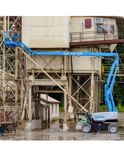 La plataforma articulada diésel de 20 metros de altura de trabajo Genie es ideal para trabajos de alta intensidad, gracias a sus neumáticos todoterreno le permite acceder a todo tipo de superficies. Es una plataforma segura, de fácil mantenimiento y con una larga vida útil.